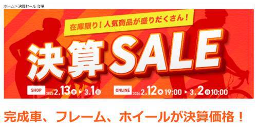 ワイズロードの通販サイト「ワイズロードONLINE」で、完成車・フレーム・ホイールなどを対象とした「決算セール」を開催中。BIANCHIのロードバイクを含む完成車のほか、パーツ、サイクルウェアまでセール価格で販売している。オンライン限定の値引き商品も用意する。