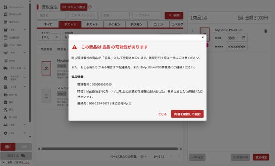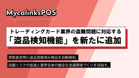 株式会社Myca(本社:茨城県つくば市、代表取締役:木村祐介)が提供するトレーディングカード専門POSシステム「MycalinksPOS」は、2026年2月18日より、「盗品検知機能」の提供を開始しました。