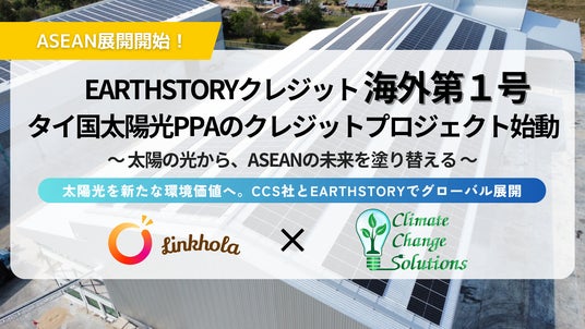 株式会社Linkhola(本社:東京都港区、代表取締役:野村 恭子、以下「Linkhola」)と、Climate Change Solutions Co., Ltd.(本社:タイ国バンコク、CEO:Christopher C. Seeley、以下「CCS社」)は、Linkholaが制度設計・運営を行うボランタリークレジット制度「EARTHSTORY」において、ASEAN地域初となる太陽光PPA(電力販売契約)モデルを軸としたカーボンクレジット創出プロジェクトを開始したことをお知らせいたします。本プロジェクトは「EARTHSTORY」の海外展開第1号案件となります。デジタル技術の活用により、申請登録から発行まで最短3か月という圧倒的なスピードを実現し、2026年5月頃のクレジット発行を予定しております。