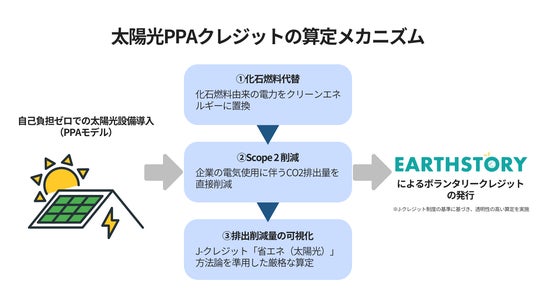 本プロジェクトでは、日本のJ-クレジット制度における「省エネルギー設備導入(太陽光発電)」の方法論を準用したEARTHSTORY独自の方法論を適用します。