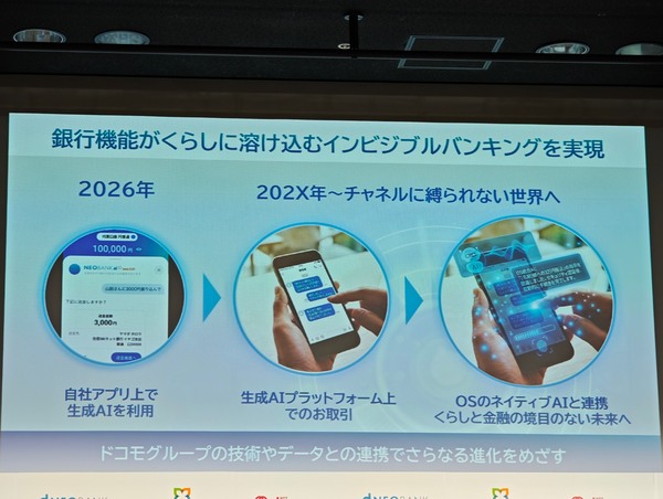 実際、昨年12月19日に行われたNTTドコモと三井住友信託銀行との会見では、202X年移行の将来像として「生成AIプラットフォームでの取引」や「OSのネイティブAIとの連携」に言及していた。
