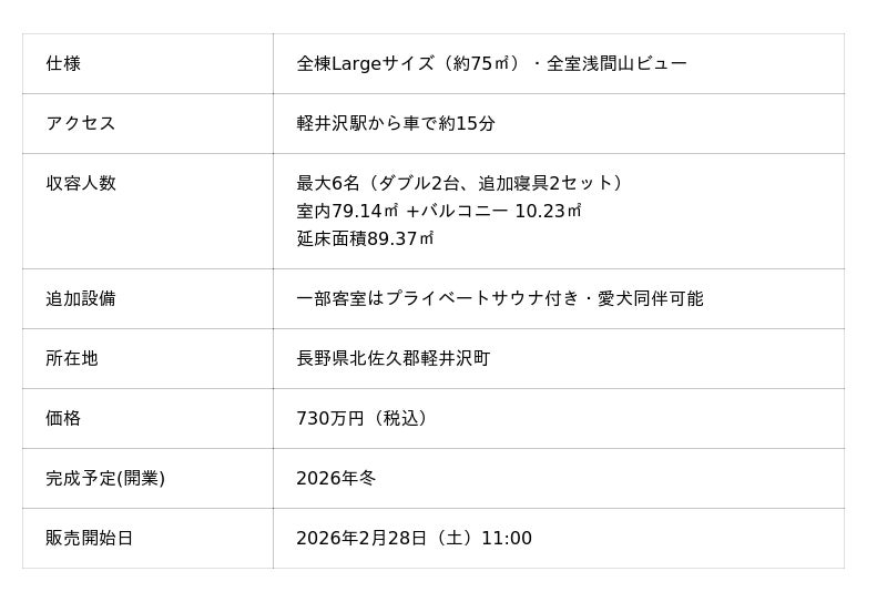 国内最大級のシェア別荘サービス「SANU 2nd Home」を展開する株式会社SANU(本社:東京都目黒区、代表取締役:福島 弦)は、2026年2月28日(土)11:00より、共同所有型セカンドホーム「SANU 2nd Home Co-Owners」の新プロジェクト 「HIKE 軽井沢」 の販売を開始いたします。