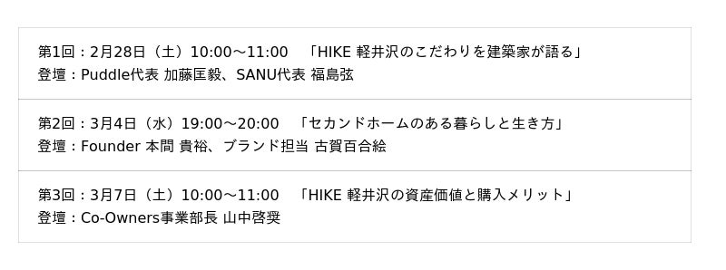 シェア別荘「SANU 2nd Home Co-Owners」、軽井沢に新拠点「HIKE 軽井沢」2月28日(土)販売開始