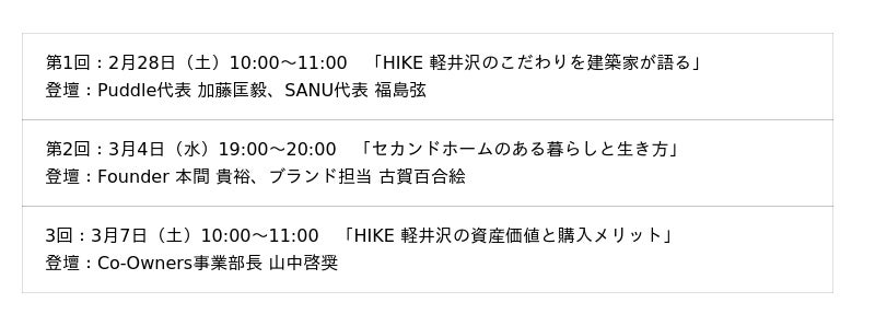 4) 2/28(土)「HIKE 軽井沢」Co-Owners発売開始