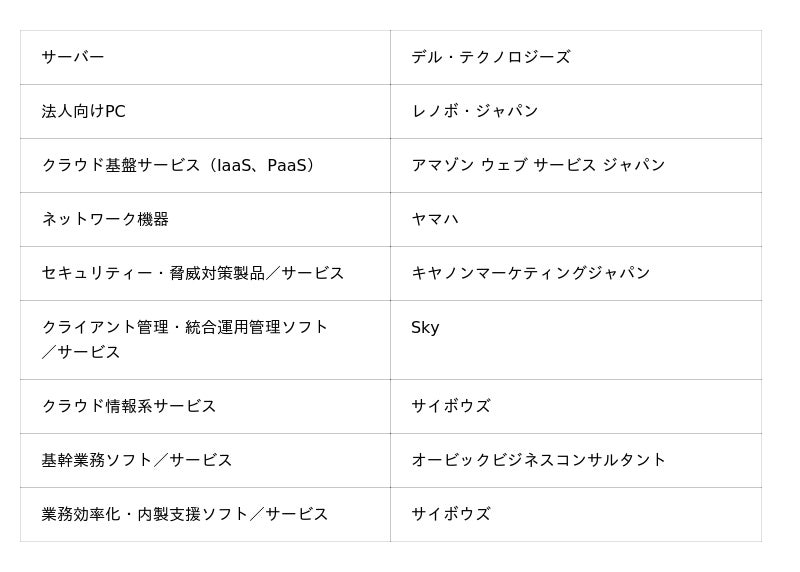 9部門を対象に、5つの軸でIT製品・サービスを評価