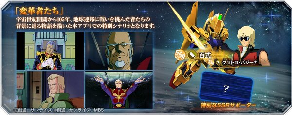 「変革者たち」をクリアすると、SSRユニット「百式」やSSRキャラクター「クワトロ・バジーナ」、そして「キルケーの魔女」を記念した特別なサポーターを報酬として獲得できる。ぜひ映画とあわせて楽しもう。開催期間は、2026年5月31日11時59分まで(予定)。