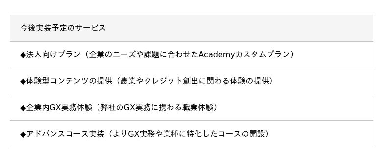 Green Career Academyは今後、個人の学習にとどまらず、大企業、自治体、地方銀行、大学と連携し、日本全体のGX人材育成を支える基盤へと進化してまいります。大企業に対しては、社員研修ツールとしてGX・脱炭素に関する知識の底上げを支援し、全社的なGXリテラシーの向上に貢献します。自治体や地方銀行とは、職員・行員のGX知識の底上げに加え、地域の中小企業へGXの考え方や実務知識を展開する役割を担っていきます。また大学とは、講義や教育プログラムへの組み込みを通じて、GX領域に明るい次世代人材の育成を推進します。Green Career Academyは、産官学が連携するGX人材育成のエコシステムを構築し、日本の脱炭素社会実現を人材面から力強く後押ししてまいります。