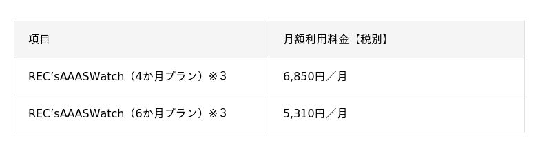 ※4:「REC’sAAASWatch」サービス料金に加えて必要な料金です。