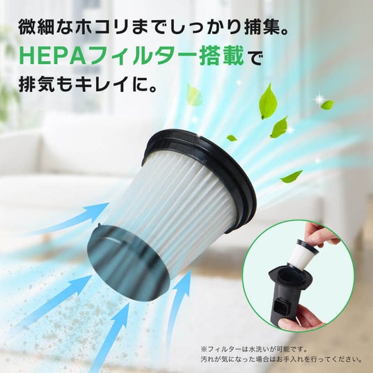 水洗いOK、HEPAフィルターとたっぷり集塵のダストカップでいつでも清潔