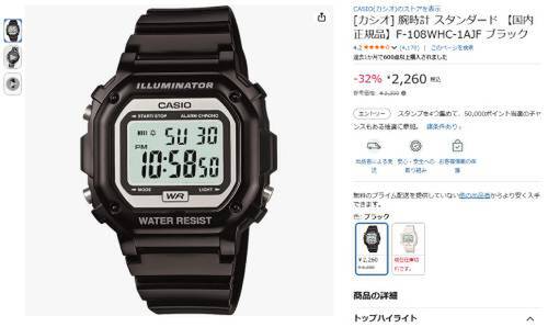 【Amazonタイムセール】CASIO(カシオ)デジタル腕時計「F-108WHC-1AJF」をチェック!