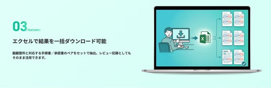 齟齬結果と対応する手順書/承認書の箇所をペアにしてセットで抽出。エクセルでの出力が可能なため、レビュー記録としてもそのままご活用いただけます。(※出力内容は随時アップデートで追加予定です)