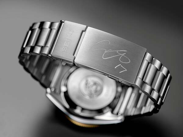 限定仕様として、りゅうずに背番号「17」を刻印。中留には⼤⾕選⼿のサインをマーキングし、裏蓋には「SHOHEI OHTANI LIMITED EDITION」とシリアルナンバーが記されている。ブレスレットは最大約15mm、約2.5mm刻みで6段階の微調整が可能で、日常使いからダイビングまで快適な装着感を追求した。専用のスペシャルボックスも付属する。