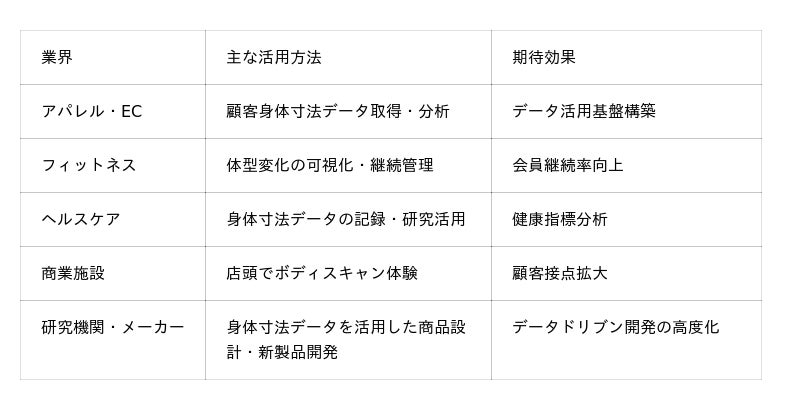 これらのユースケースは、AI身体計測およびボディインテリジェンスの活用可能性を広げるものです。