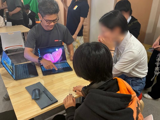Lenovo様と共同イベント実施。中高生が最新機器に触れる様子