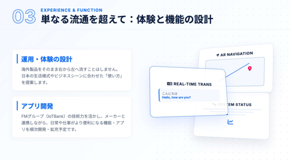 そのほか、同社の技術力を活かし、Rokidと連携しながら日常や仕事がより便利になる機能やアプリも順次開発、拡充していくとのことだ。