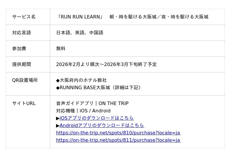 一般社団法人関西イノベーションセンター(所在地:大阪府大阪市中央区、理事長 : 早⼄女 実、以下、MUIC Kansai)は、株式会社on the trip(所在地:東京都港区)と提携して、「大阪城公園のランニング&ウォーキングガイド」の音声ガイドをリリースしております。