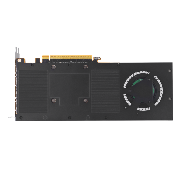「TURBO-AI-PRO-R9700-32G」はAMD Radeon AI PRO 9700を搭載し、限られたスペースでも効率的に運用できるように設計されている。2スロットデザインに優れた放熱性を備え、基盤の歪みを防ぐ堅牢なダイキャストシュラウドおよびバックプレートも採用されている。