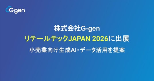株式会社G-gen(本社:東京都新宿区、代表取締役:羽柴 孝、以下 G-gen)は、2026年3月3日(火)~6日(金)に東京ビッグサイト東展示棟で開催される国内最大級の小売・流通向けIT総合展「リテールテックJAPAN2026」に出展いたします。