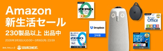 ソースネクスト株式会社(本社:東京都千代田区三番町3-8 泉館三番町3階 代表取締役社長:小嶋 智彰)は、3月3日(火)から3月9日(月)までの7日間、Amazon公式ストアおよびAmazon内のソースネクスト・ブランドストアページで開催される「Amazon 新生活セール」(先行セール含む)に、弊社の人気製品230製品以上を最大80%割引で提供することをお知らせいたします。