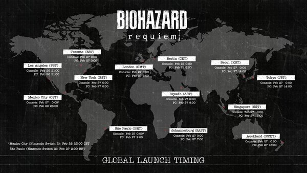 カプコンは2月26日、発売が迫るシリーズ最新作「バイオハザード レクイエム」のリリース時刻について情報を公開。国内では、コンシューマー版が2月27日0時から、PC版が14時から遊べるようになる。