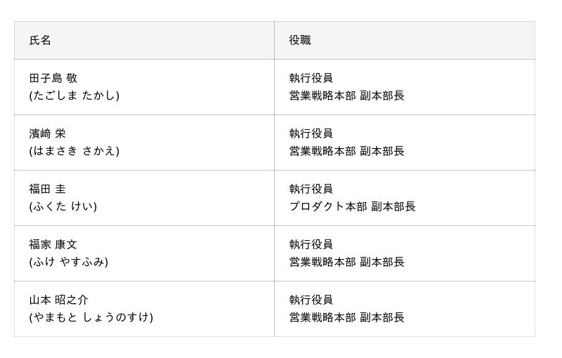 執行役員人事および役員体制に関するお知らせ