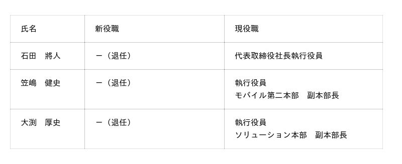 2025年12月16日に発表した「代表取締役社長の異動に関するお知らせ」に記載のとおり、石田 將人氏は2026年4月1日付で顧問に就任する。