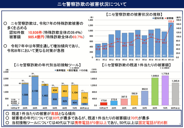 警察庁が発表した「令和7年(2025年)の犯罪情勢」によると、いわゆる特殊詐欺の被害額が1414億2000万円、SNS型投資/ロマンス詐欺被害額も1827億円に上ることがわかりました。