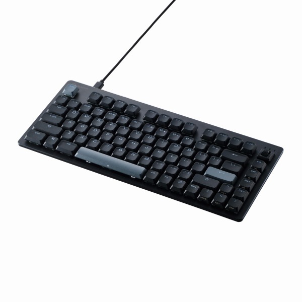 最短でわずか0.1mmの押し込み・押し戻しでキー入力のON/OFF操作ができる、磁気検知式スイッチ搭載の75%サイズ磁気式ロープロファイルゲーミングキーボード。ホットスワップ方式スイッチを採用し、右上のプログラマブルダイヤルには独自の動作を割り当て可能。2ndアクション機能により、深く押すとダッシュなど、1つのキーに2つの操作を割り振ることが可能です。