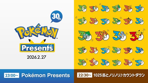 30分前からカウントダウン!「ポケモンプレゼンツ」2月27日23時から配信【ポケモン30周年】