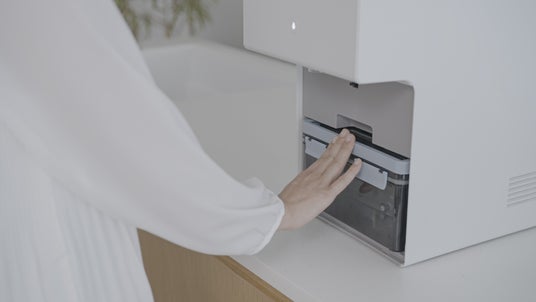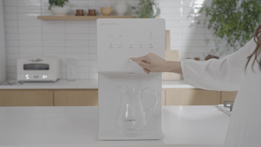 横幅26cmの卓上タイプ。コンセントに挿すだけで設置が完了します。工事不要なので、キッチン、リビング、寝室など、お好みの場所でいつでもおいしい水をお楽しみいただけます。
