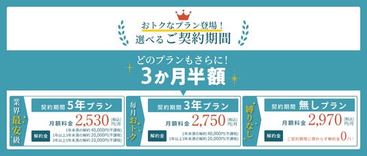 (※)当社においては「5年プラン(月額2,530円/税込)」適用時。 (3年プラン:2,750円、縛りなしプラン:2,970円)