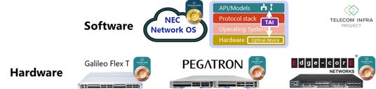 NECは、Pegatron CorporationおよびEdgecore Networksの2社と協力し、Telecom Infra Project(TIP 注1)より、両社の新しいハードウェア製品である「Endeavor(Pegatron)」と「AMX3200(Edgecore)」に対して、「Phoenix」として知られる400G光トランスポンダソリューションのBronzeバッジ認証を取得しました。