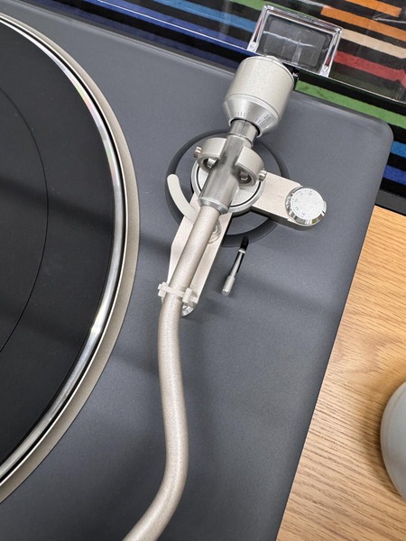 トーンアームはS字型ショートアーム(有効長220mm、オーバーハング16mm)のスタティックバランス型で、針圧は0〜4.0g、重さ5.0〜13.0gのカートリッジに対応する。針圧は目盛りとの誤差が0.1gと高精度だ。