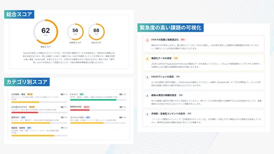 AIからの評価スコア: 現在のサイトがAIからどのように認識されているかを見える化。