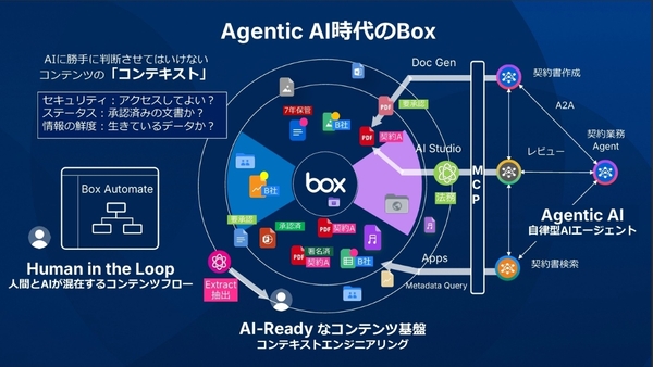 さらに、こうしたコンテンツ管理も含めた「データを整理整頓する」ためのBoxの機能が、AIエージェント時代で真価を発揮するという。Box内外のAIエージェントが自律的に連携するような世界では、LLMの性能ではなく、参照するデータが「信頼できる唯一の情報源(Single Source of Truth)」として整備されているかどうかが重要になるからだ。