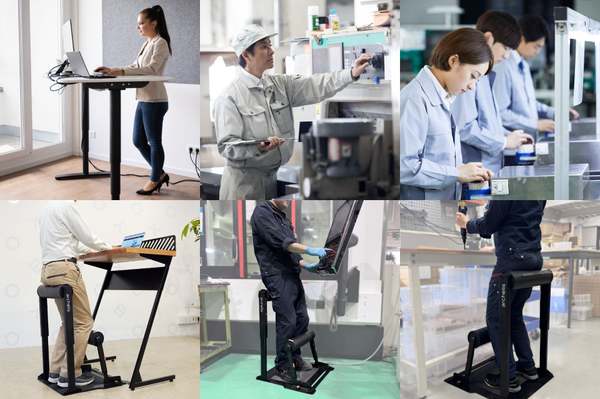 同製品は、工場やスタンディングデスクなど立ち作業が中心となる現場において、足裏や腰、膝への負担を軽減するために開発されたサポートデバイス。椅子を置けない作業スペースでも導入しやすい省スペース設計によって作業環境を圧迫せず設置でき、立ち姿勢の安定性を高めながら足腰への負荷を軽減するとしている。