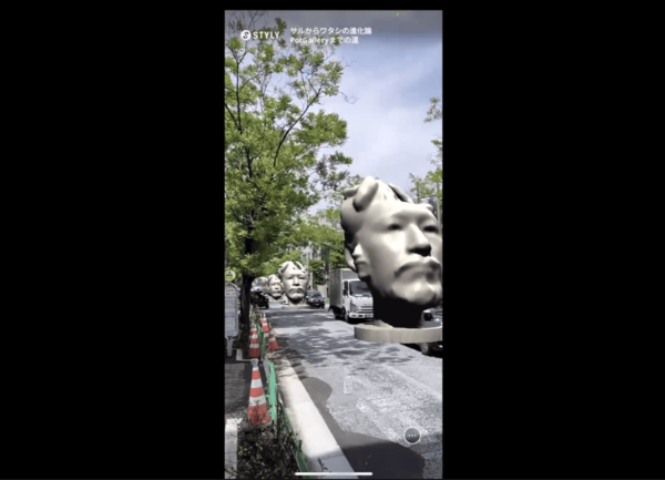 XRプラットフォーム「STYLY」のエンジニアであり、個人でアーティストとしても活動するhacha氏は、都市AR道案内を発表した。背景となったのは、南青山で開催したグループ展で、フォトグラメトリーと3Dスカルプティングで作った3Dプリント造形作品「自我像」を出展したこと。これをせっかくなら「もっとでっかく展示したい」と考え、「STYLY」のモバイルアプリを使って表参道の交差点のど真ん中に自身の作品を表示した。