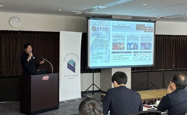 発表の冒頭では、ARコンテンツ制作におけるPLATEAUの活用例が紹介された。例えば、ARで巨大キャラクターを出現させる場合、現実の街並みを自然に再現するための3D都市モデルとしてPLATEAUを利用しているという。STYLYでは、こうしたARコンテンツを専門知識がなくても制作できる環境を整えており、昨年度には国の直轄事業として、3都市でARアート展覧会を実施した実績もある。