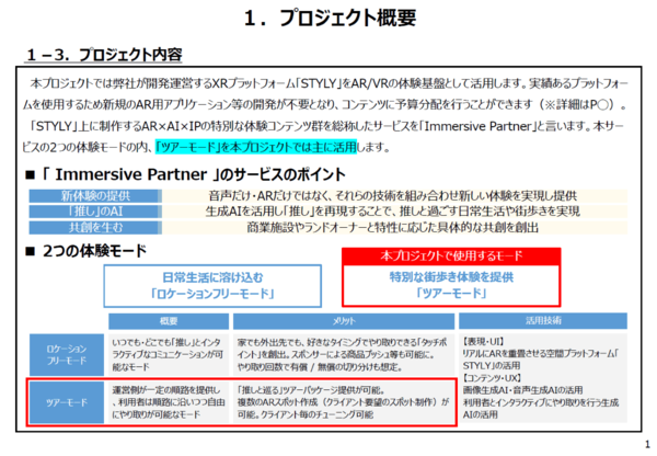今回提案されたのは、「Immersive Partner “推し”とめぐる東北の旅 in 仙台」。XRプラットフォーム「STYLY」を用い、仙台市や東北にゆかりのあるアイドルやスポーツ選手をモチーフにした“推しAI”と一緒に街を巡る、AR×AI連動型の観光・街歩きサービスだ。