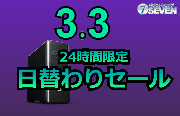 セブンアールジャパンが運営するパソコンショップSEVENは、3月3日に『2026/3/3 24時間限定セール』を開催する。期間は当日0:00から23:59までの24時間限定で、最新のゲーミングPCやデスクトップPCが最大71,000円オフとなる。