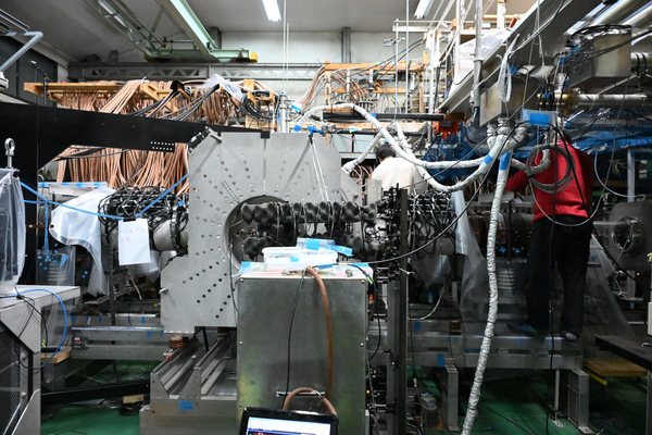 茨城県にある実験装置「JT-60SA」や岐阜県の大型ヘリカル装置といった国内の大規模な核融合実験装置とは、その規模感がまったく異なる。装置の全体像を一度に見渡せる空間で、核融合に向けた実験が進められている。そのギャップにまず驚かされる 。