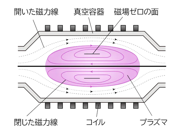 この方式は、国内の2つの大学で進められてきた研究が組み合わさって生まれた。ひとつは、日本大学で長年研究されてきたFRC(Field-Reversed Configuration:磁場反転配位)。プラズマ自身がつくる磁場によって、高温・高密度のプラズマを閉じ込める効率が高い手法だ。もうひとつが、筑波大学で研究されてきた「ミラー」と呼ばれる直線型の磁場構造で、こちらも安定的な稼働で装置を比較的シンプルに構成できる。