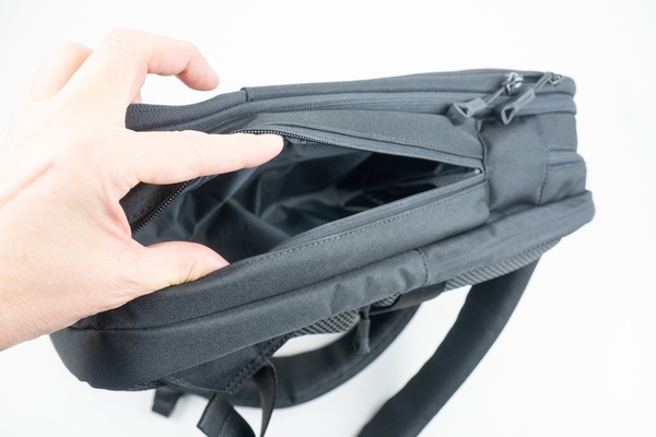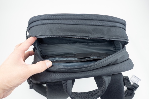 中央が2階建て構造になっているため、重い荷物が底に溜まってしまうリュック特有のストレスも軽減。よく外付けされがちなペットボトルや折り畳み傘の収納スペースも内側に配置されており、見た目もスッキリしています。