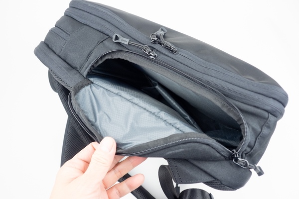 さらに素晴らしいのが、空間を無駄にしない「5つの分割構造」。最大16インチ対応のクッション付きPCスペースや、小物を整理しやすい上部オーガナイザースペースなど、出したいものを一瞬で取り出せる工夫が凝らされています。