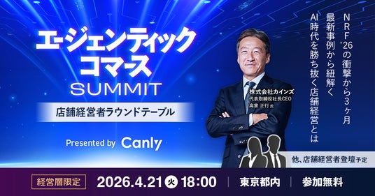 株式会社カンリー(本社:東京都品川区、代表取締役:辰巳 衛 , 秋山 祐太朗、以下 カンリー)は、2026年4月21日(火)、小売・外食・サービス業などの店舗事業を運営する企業の経営層を対象とした限定イベント「エージェンティックコマースサミット ~ 店舗経営者ラウンドテーブル ~」を開催いたします。