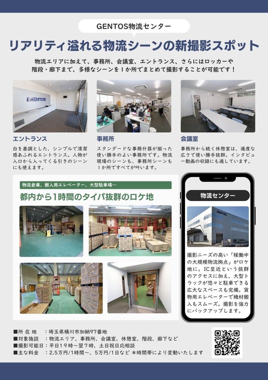 「Tロケ」において物流センター(倉庫)の需要は極めて高く、これまでに6か所の提携物件で多数の撮影実績があります。しかし、稼働中の大規模施設を貸し出せるケースは限られており、今回のジェントス社との提携により、リアリティ溢れる物流シーンの撮影が可能になりました。また、ジェントスでは物流エリアに加えて、事務所、会議室、エントランス、ロッカー室や階段・廊下まで、多様なシーンを1施設で撮影することが可能で、映像制作会社の移動時間を大幅に削減し、制作現場の「タイムパフォーマンス(タイパ)」向上に大きく貢献します。