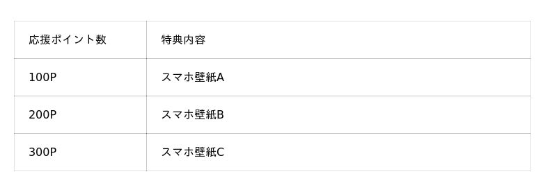 ※例:累計100P達成で「スマホ壁紙A」、累計200P達成で「スマホ壁紙B」を配布します。