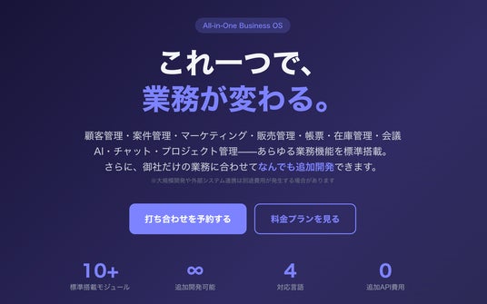 業務管理・帳票・プロジェクト管理・会議AI議事録etc...――すべてを一つに統合。初期費用¥0、月額¥6,000から。ローンチキャンペーンで3ヶ月間40%OFF
