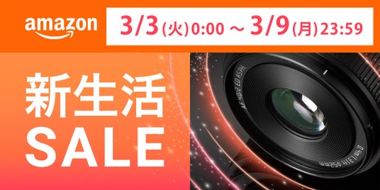 株式会社焦点工房は、Amazonにて開催される「2026年 新生活セール」に参加いたします。セール期間中は、当社取り扱いの交換レンズ、マウントアダプター、カメラアクセサリーなど多数の製品を、特別価格にて販売する予定でございます。お得な商品を多数取り揃えて、皆さまをお待ちしております。