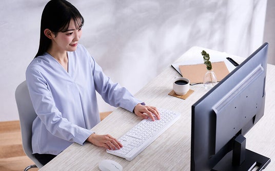 ▲ 静かなオフィスでも気兼ねなく使える写真:無線フルキーボードモデル〈ホワイト〉